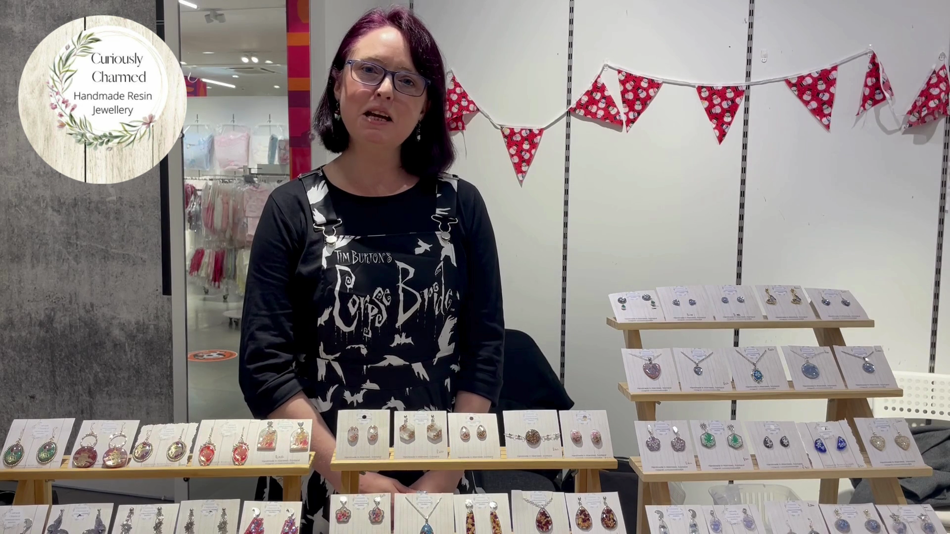 We caught up with Roelene who told us about the special pieces Curiously Charmed will be bringing to the market – including her signature real dried flowers set in resin and her seasonal “ugly Christmas sweater” jewellery.