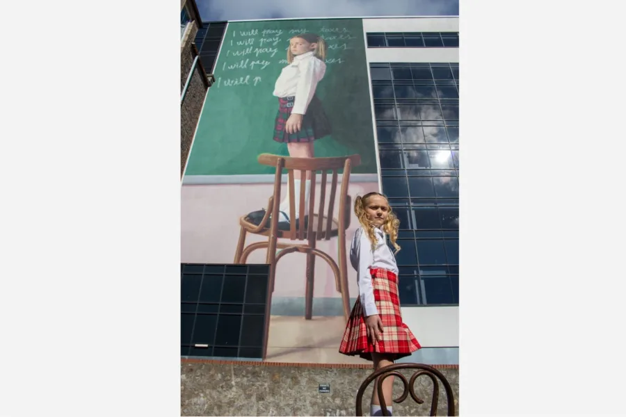 Working with family and friends, the trio have created their own real-life versions of 10 of the stunning works, such as Smug’s massive portrait on the Green, the much-loved Super Scurry by Conzo Throb and Ciaran Glöbel at Country Ways, and even the girl with a unicorn, the towering piece by Hera on the side of Union Point.