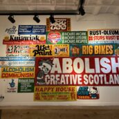 Ciarán Glöbel is a signpainter and designer from Glasgow. Inspired by the graphic ephemera of a bygone era, he uses traditional lettering techniques in a contemporary manner and creates typographic treatments using enamel and aerosol paint on reclaimed polyvinyl. Ciarán has painted murals & signs internationally for over 15 years and in the summer of 2025, co-founded 'Grateful' an independent art gallery in Glasgow catering for fans of graffiti, mural culture and design, alongside friends Conzo Throb and OhPandah.