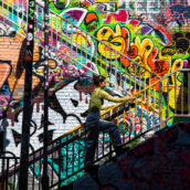 Since the early 2000s, Rough has developed a body of work spanning canvas, paper, wood, brick and concrete. A leading figure within the graffuturism and post graffiti movements, Rough has exhibited internationally and produced major murals in cities worldwide for over three decades.