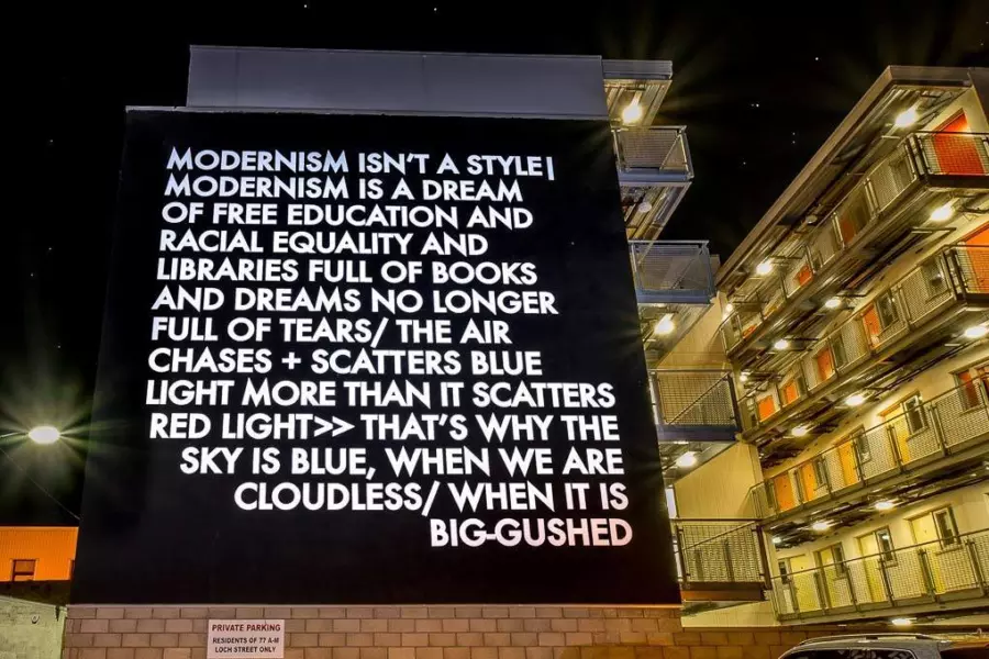 Robert Montgomery has been called a vandal, a street artist, a post-Situationist, a punk artist and the “poet’s Banksy”. He is noticeable for bringing a poetic voice to the discourse of text art through his paste-up artworks, murals and light installations. Originally from Scotland, he has exhibited at the 2011 Venice Biennale and 2012 Kochi-Muziris Biennale in India.