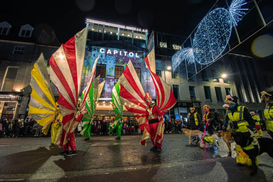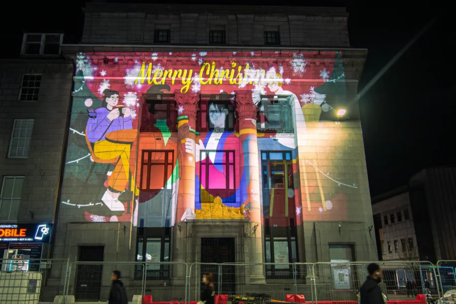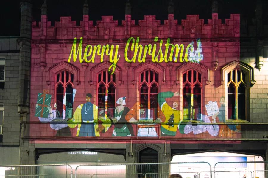 Christmas in Aberdeen 2025, Aberdeen Inspired and Costa Coffee Aberdeen brought extra sparkle to Union Street with stunning animated light projections on three of the city’s most iconic buildings – the Capitol, Trinity Hall and the former RBS building at St Nicholas Square. Unveiled during the Christmas Parade on Sunday 16 November, the illuminations form part of Costa’s UK-wide Christmas Catch Up campaign.