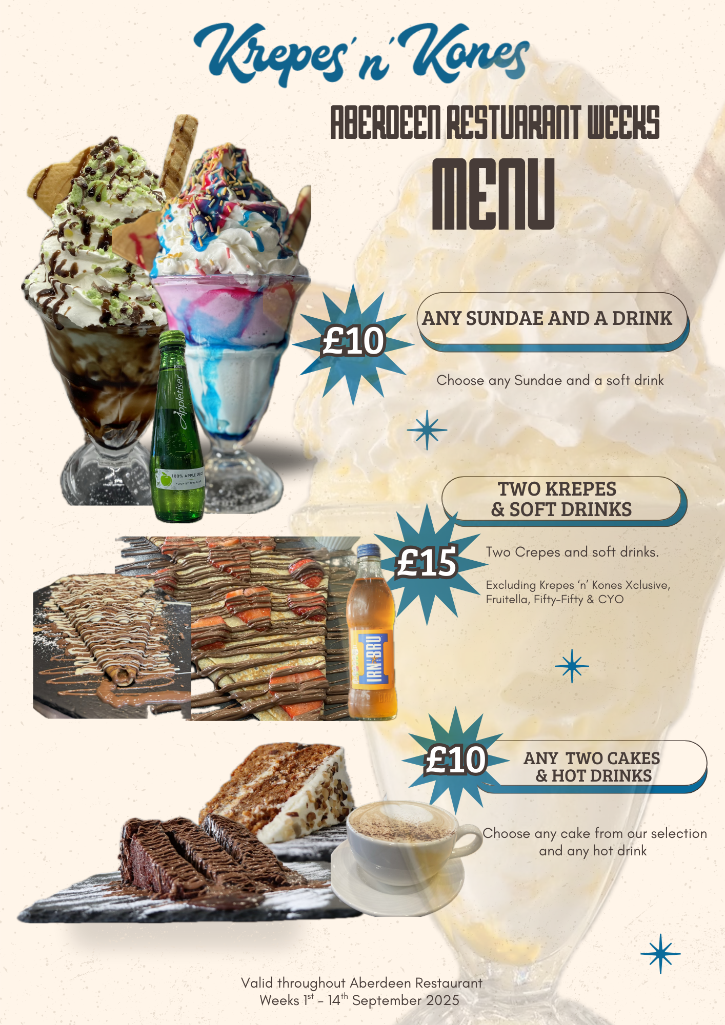 For Aberdeen Restaurant Weeks, Krepes ‘n’ Kones is pleased to offer: