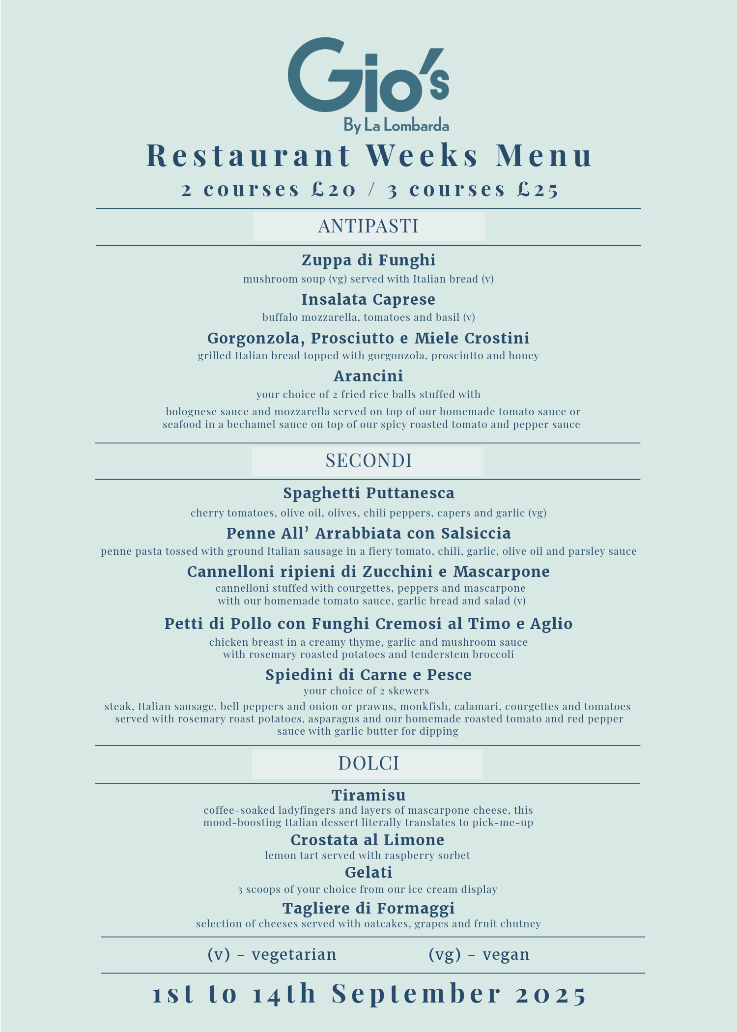 Gio's by La Lombarda Restaurant is an exciting new addition to the well known La Lombarda Restaurant name on Castlegate.