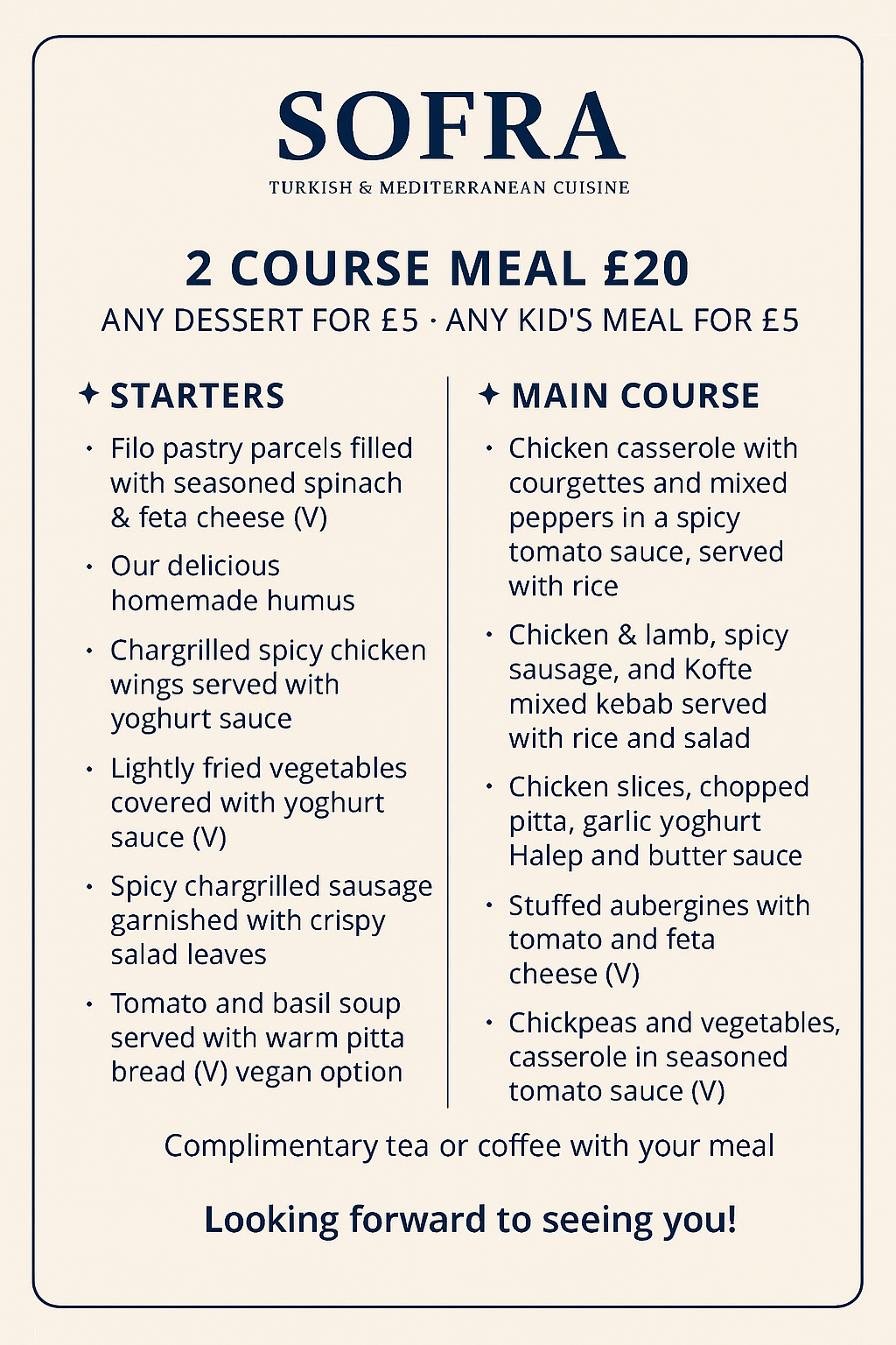 For Aberdeen Restaurant Weeks, Sofra is pleased to offer:
